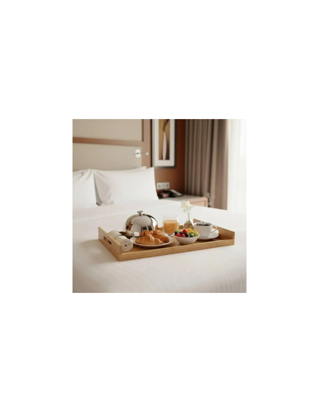The 60x40x7 cm room service tray from Pro.mundi is made of natural bamboo, combining sturdiness and refined design. Its generous size allows for efficient transport of dishes and drinks, while the...