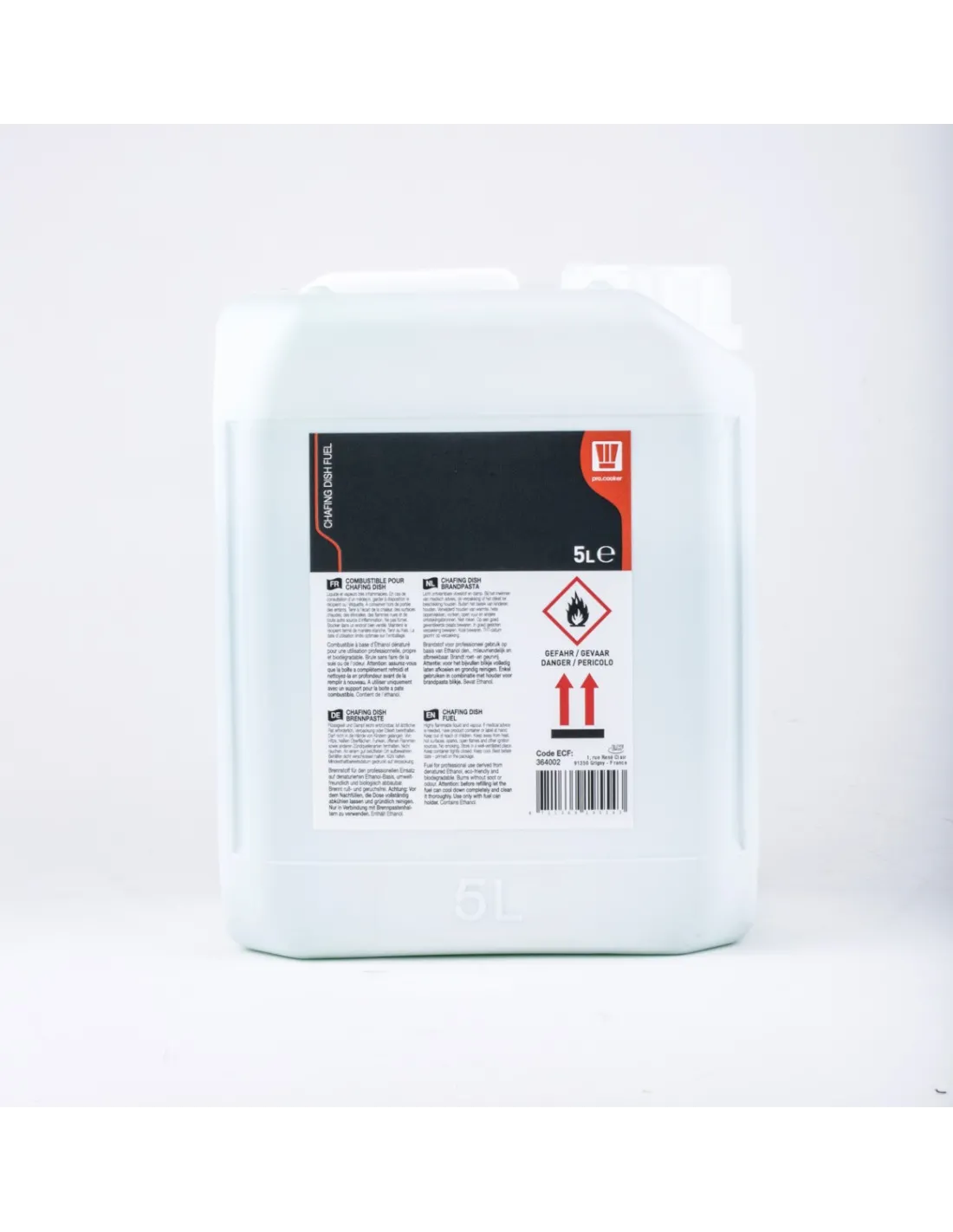 Bidón de gel combustible de etanol de 5L. Duración de combustión 3H para 22CL . Bomba opcional. Para chafing dish y hornillos para fondue.