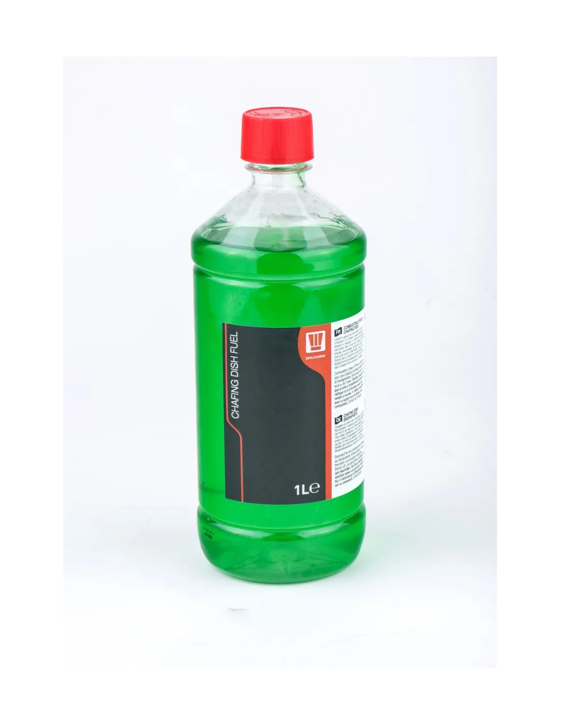 Botella de gel combustible de etanol de 1L. Proporciona un tiempo de combustión de 3 horas para 22CL. Compatible con chafing dish y hornillos de fondue.