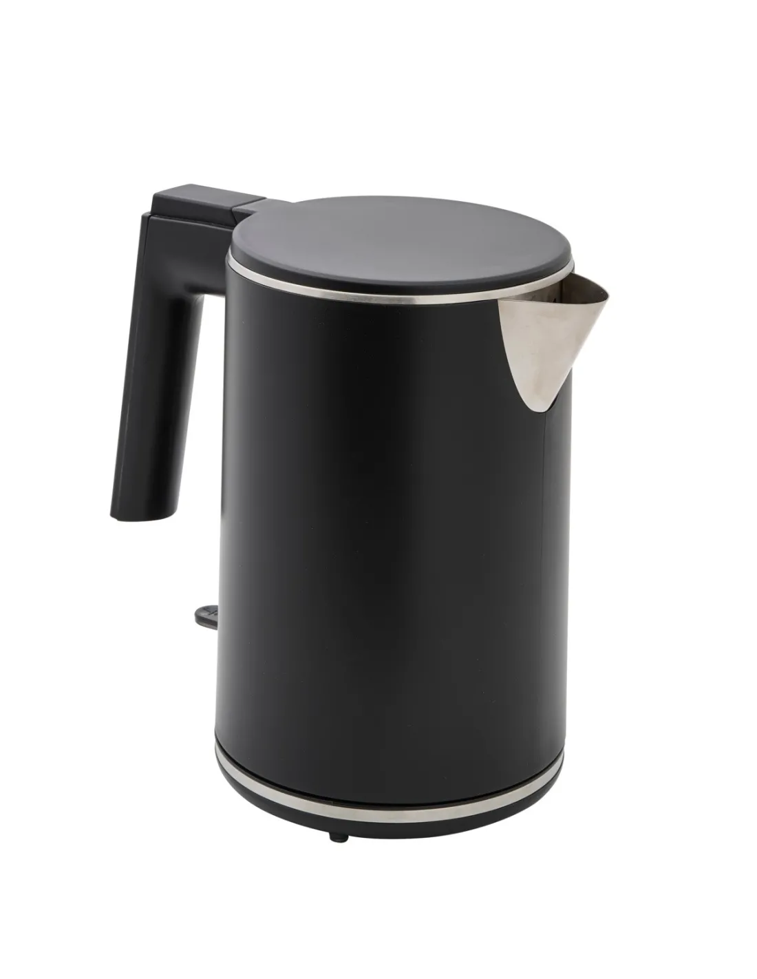 El hervidor eléctrico negro mate de 1500 W tiene una capacidad de 1 litro y está fabricado en acero inoxidable de doble pared. Su diseño se adapta a diversas decoraciones y cuenta con un asa...