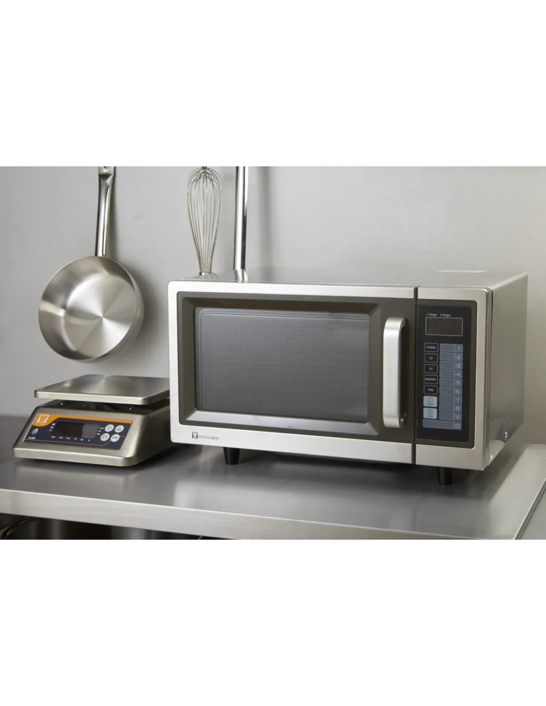 El Horno microondas EM025FDN 25 L 1000 W Pro.equip está diseñado para los profesionales de la restauración. Con sus dimensiones generosas, admite platos de hasta 30,5 cm. Dispone de 10 niveles de potencia y 10 menús programables, facilitando su uso. Su construcción en acero inoxidable y epoxi asegura durabilidad y facilidad de mantenimiento. Compacto, se integra fácilmente en espacios reducidos. Este equipo eficiente y fiable responde perfectamente a las necesidades diarias de los profesionales.