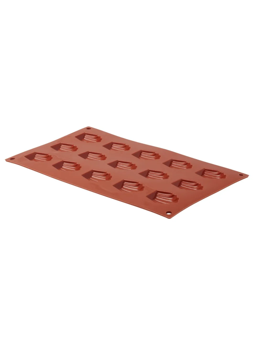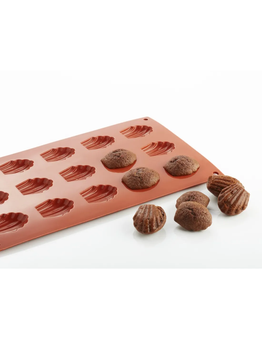 Molde de silicona para 15 mini madeleines, dimensiones 29,5 x 17,5 cm. Cavidades de L4,4 x l3,4 x H1 cm con capacidad de 1 cl. Cumple normativas alimentarias, adecuado para profesionales de la...