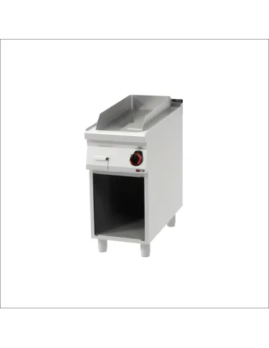 La plancha eléctrica lisa 90×40 NTGas es una herramienta de alta eficiencia para el sector horeca. Con un espesor de 12 mm, ofrece excelente conductividad térmica, asegurando una cocción uniforme. Fabricada en hierro, soporta temperaturas de 500 a 300ºC, adecuada para diversas preparaciones. Sus dimensiones de 400 x 900 x 900 mm y potencia de 6 kW garantizan un uso intensivo. Funciona con un sistema de pie y elemento neutro, operando a 400V. Ideal para cocinas profesionales que requieren precisión y durabilidad en sus equipos de cocción.