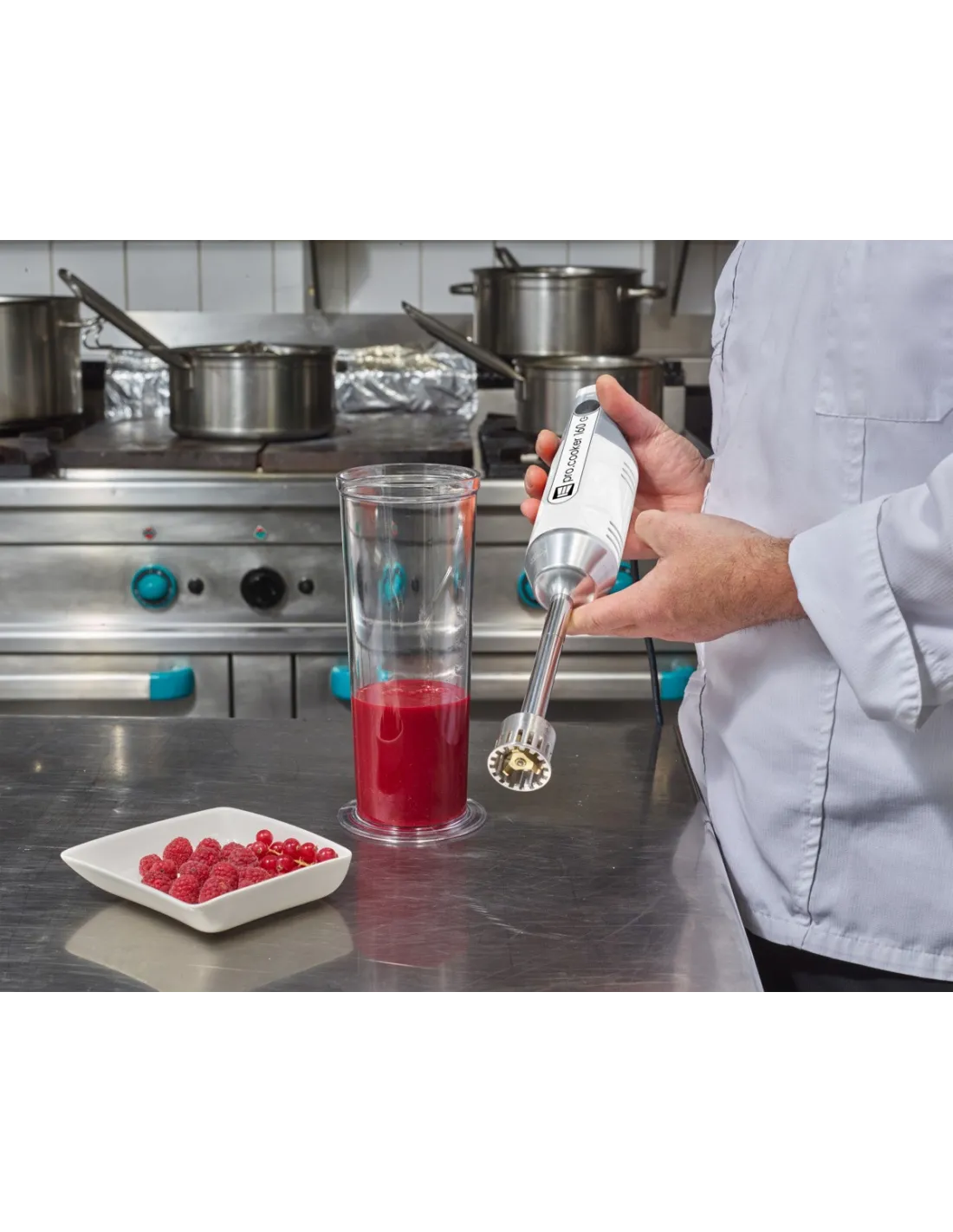 Para bloque motor del mini mixer Pro.cooker. Velocidad en carga: 0 a 13 000 rpm. Tritura, machaca, mezcla, alisa o emulsiona a la perfección en solo unos minutos. Funcionamiento: La preparación es aspirada por la parte inferior, cizallada y triturada por el martillo y luego expulsada a gran velocidad a través de las lengüetas de la campana.