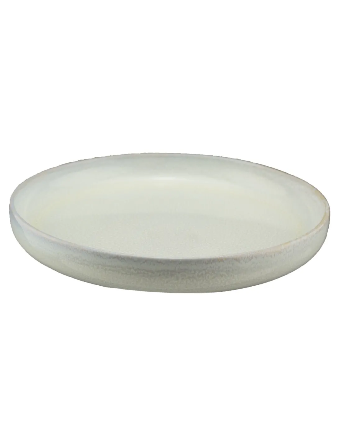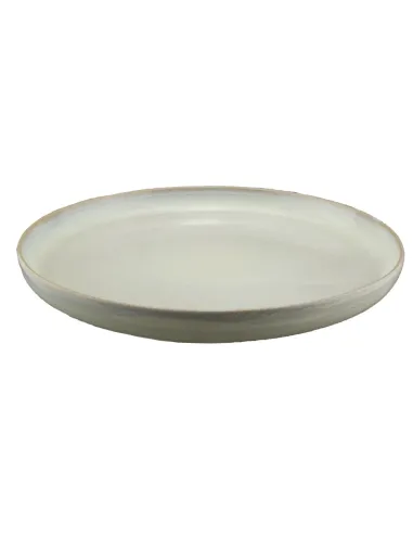 Plato llano redondo de gres esmaltado en color beige rosado, con un diámetro de 27 cm. Diseñado para uso profesional, combina durabilidad y fácil mantenimiento.