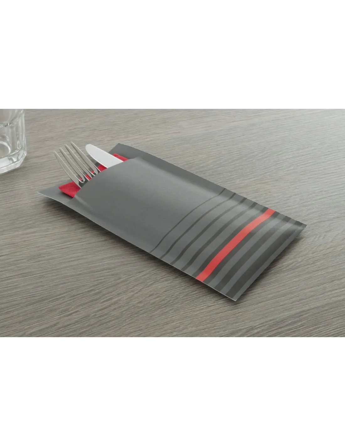 Portacubiertos negro papel 20x10 cm Waves Pro.mundi (50 unidades)