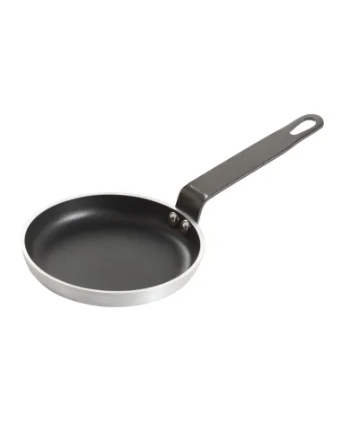 Sartén redonda para blinis de aluminio grueso (3-5 mm) con revestimiento antiadherente multicapa. Diámetro de 12 cm y altura de 2 cm. Mango remachado extra resistente con orificio para colgar....