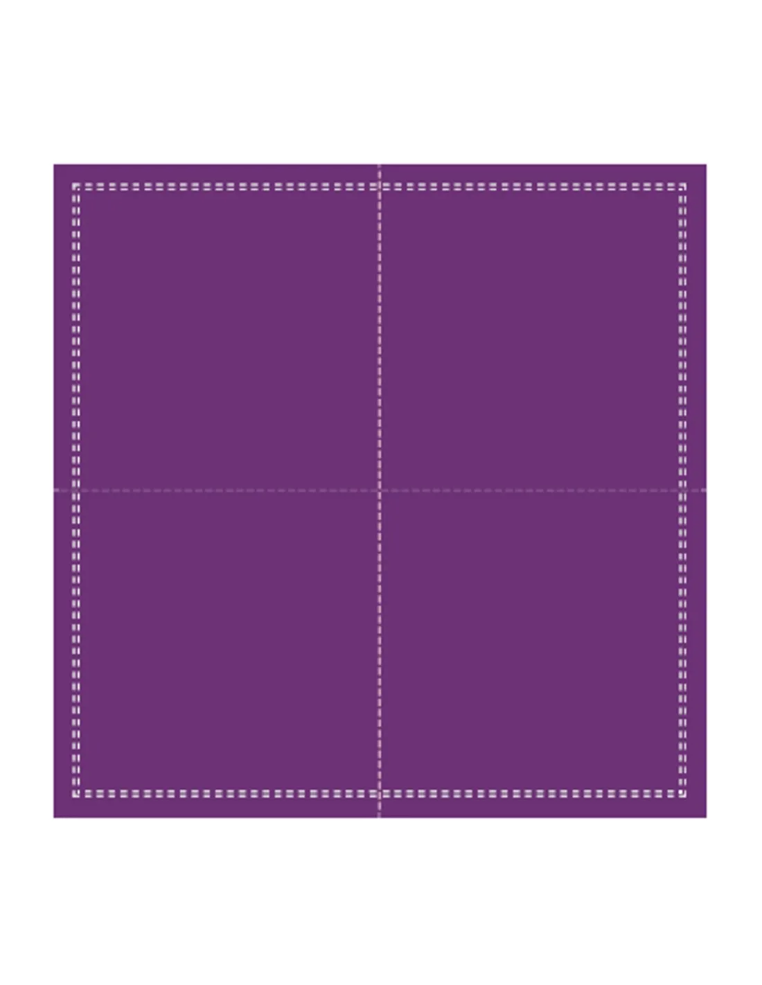 Servilleta de cóctel cuadrada de color violeta, fabricada en algodón, con medidas de 20x20 cm. Presentación en paquete de 1000 unidades.