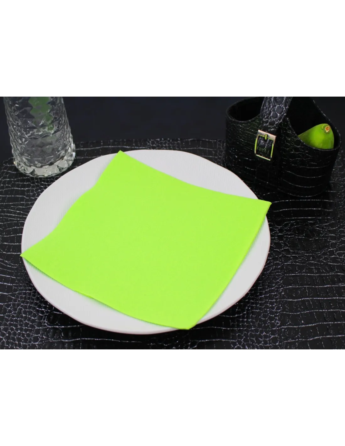 Esta servilleta verde granny en celulosa gofrada encolada asegura buena presencia en mesa y un tacto suave agradable. Su color sobrio y elegante realza su espacio de restauración. Con unas dimensiones de 38x38 cm, es adecuada para profesionales con espacios reducidos. Envasada en paquete de 50 servilletas, está disponible en varios colores y combina con la gama de manteles y caminos Lisah. Certificación Ecolabel Nº: FR/004/014.