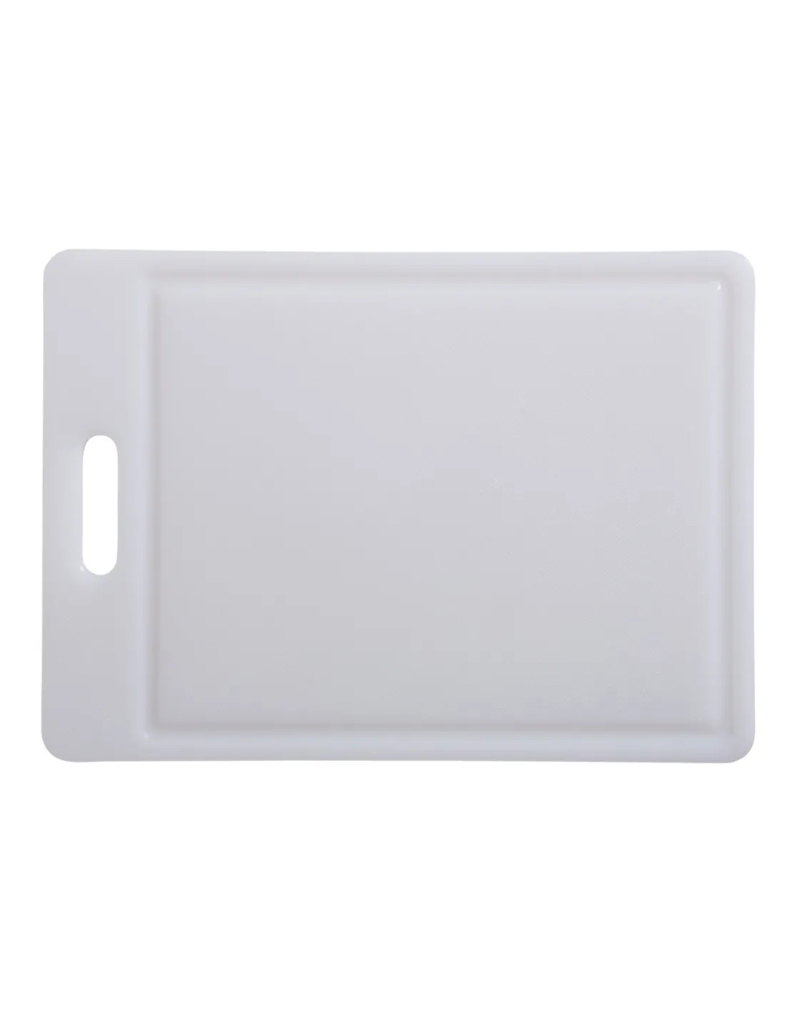 Tabla de corte de polietileno de alta densidad (PEHD) blanca, con medidas de 35x25 cm. Cuenta con canaleta y no es reversible.
