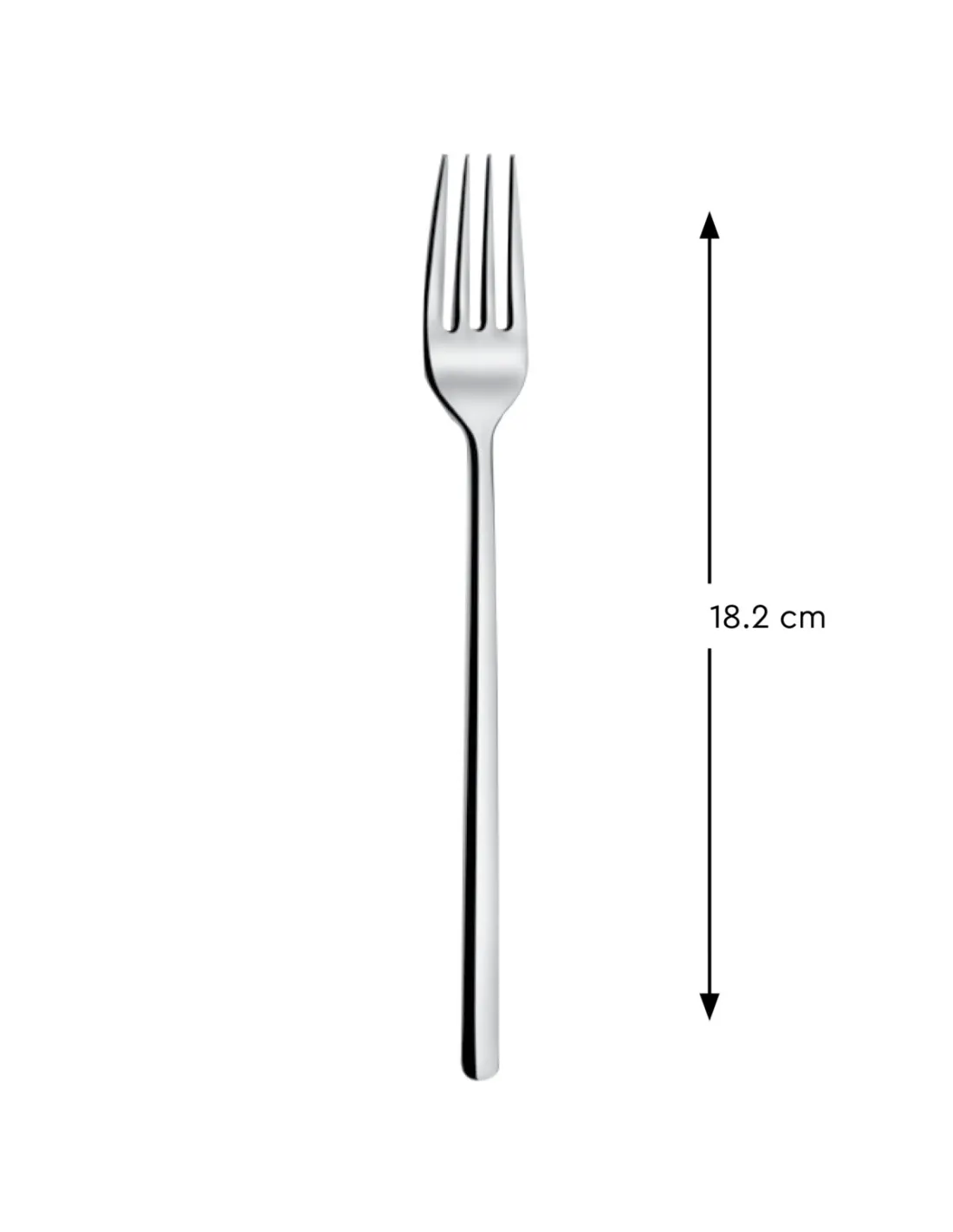Tenedor de postre de acero inoxidable 18/10, con una medida de 18,2 cm. Este utensilio destaca por su durabilidad, resistencia a la corrosión y fácil mantenimiento. Su diseño minimalista y acabado...