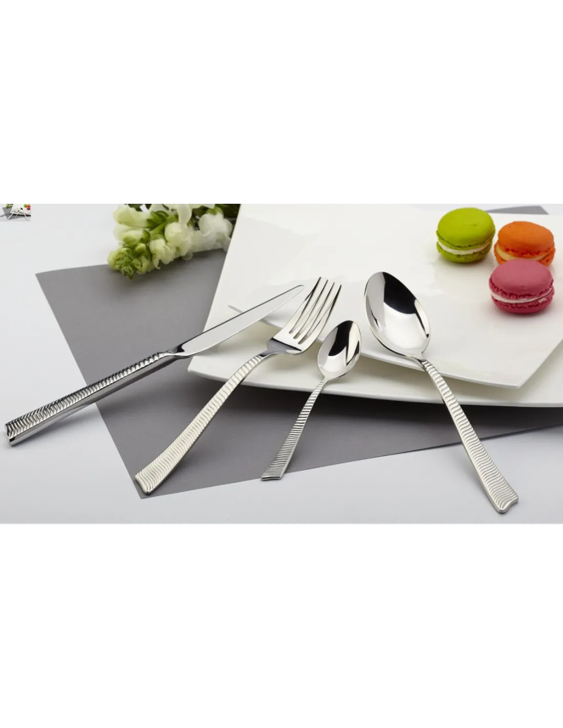 Pro.mundi ofrece un tenedor en inox 18/10 de 21,5 cm con diseño Wave cincelado, que aúna elegancia y practicidad. Resistente a la corrosión y de fácil mantenimiento, disimula las huellas y ofrece un agarre cómodo. Ideal para profesionales, combina estilo, durabilidad y funcionalidad para una presentación cuidada.