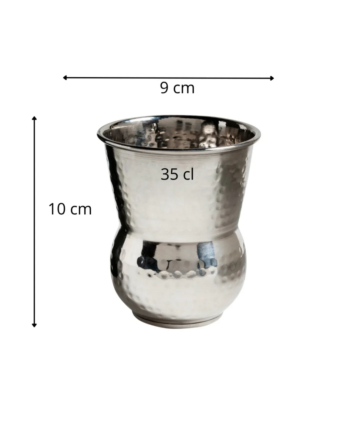 Vaso inox 18/10 de 35 cl, fabricado con acero inoxidable de alta calidad, combina durabilidad y un diseño elegante. Su acabado martillado ayuda a mantener la frescura de las bebidas. Con...