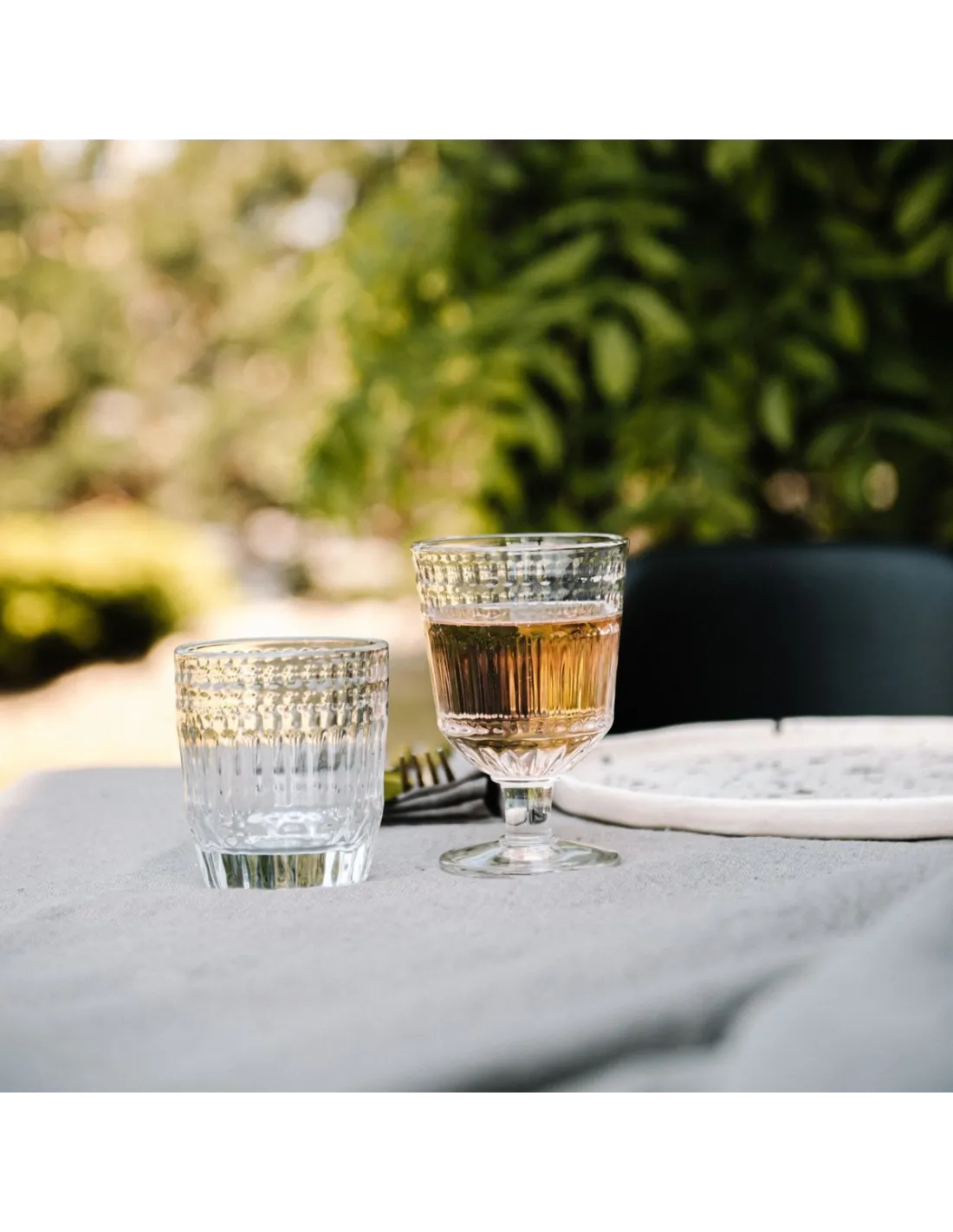 La marca Accolade ofrece un vaso bajo de vidrio prensado de 28 cl, que combina robustez y elegancia con un diseño acanalado. Diseñado para la restauración profesional, es resistente, apto para lavavajillas y se integra perfectamente en un ambiente elegante. Fabricado en Francia, es ideal para servir diversas bebidas con estilo.